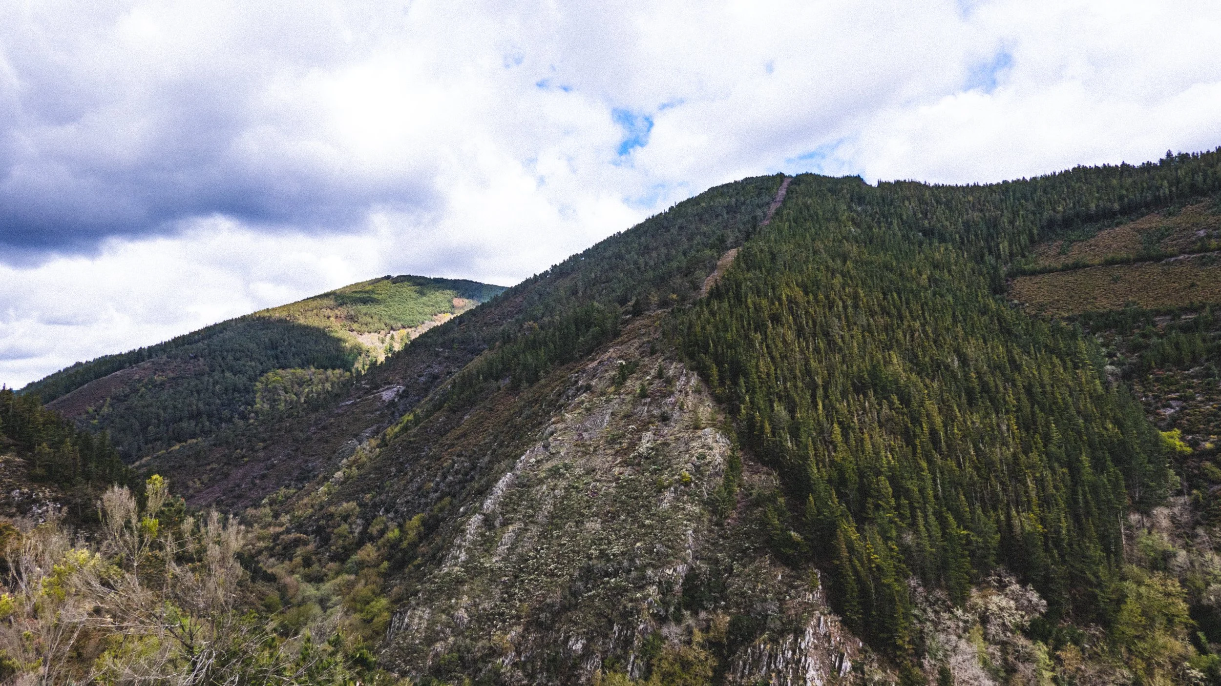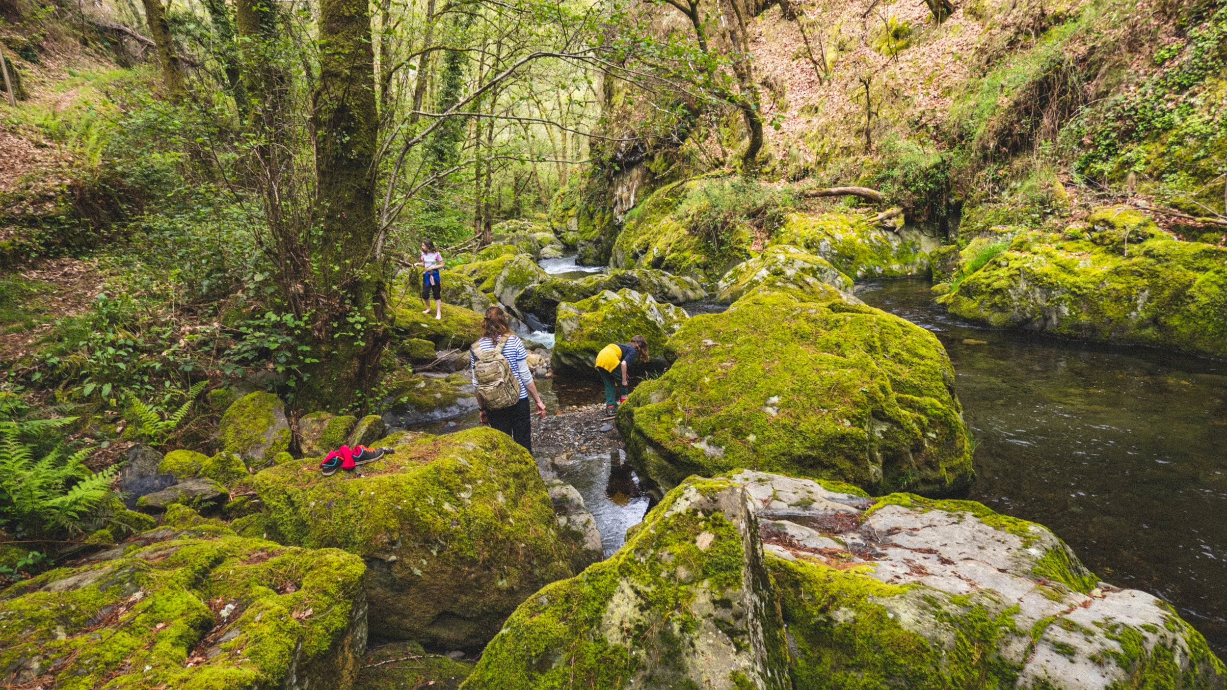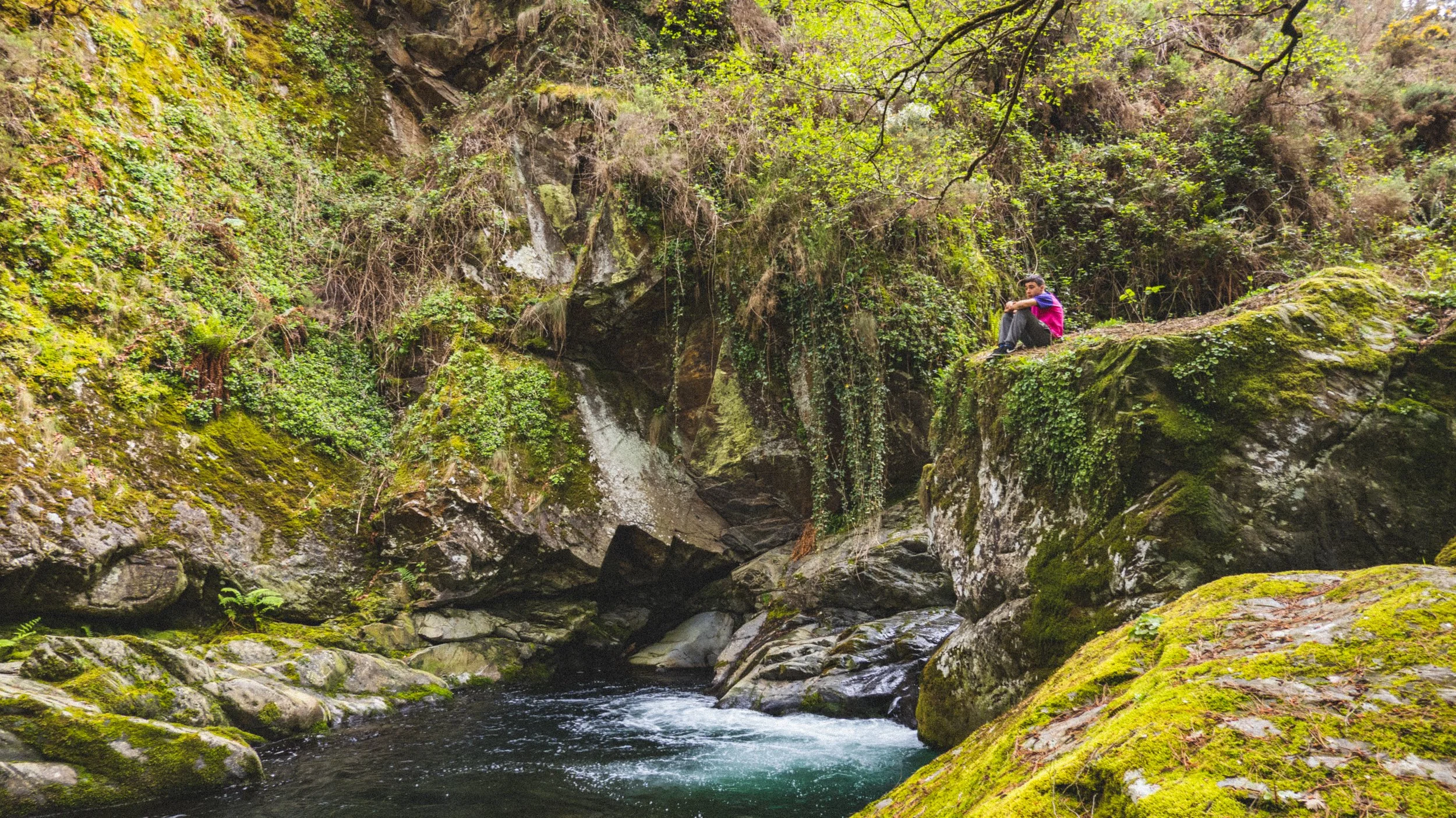 The first trail leads gently toward the stone village of Pesoz, slipping under a canopy of ancient chestnut and oak trees. The forest feels almost primeval — moss thick on the trunks, the air heavy with the scent of wet leaves and earth. Between the branches, you catch the soft murmur of the Río Agüeira, winding through ferns and fallen branches. Every bend holds a small discovery: a wooden bridge, an old mill half lost to time, or a ray of light piercing through the deep green.
