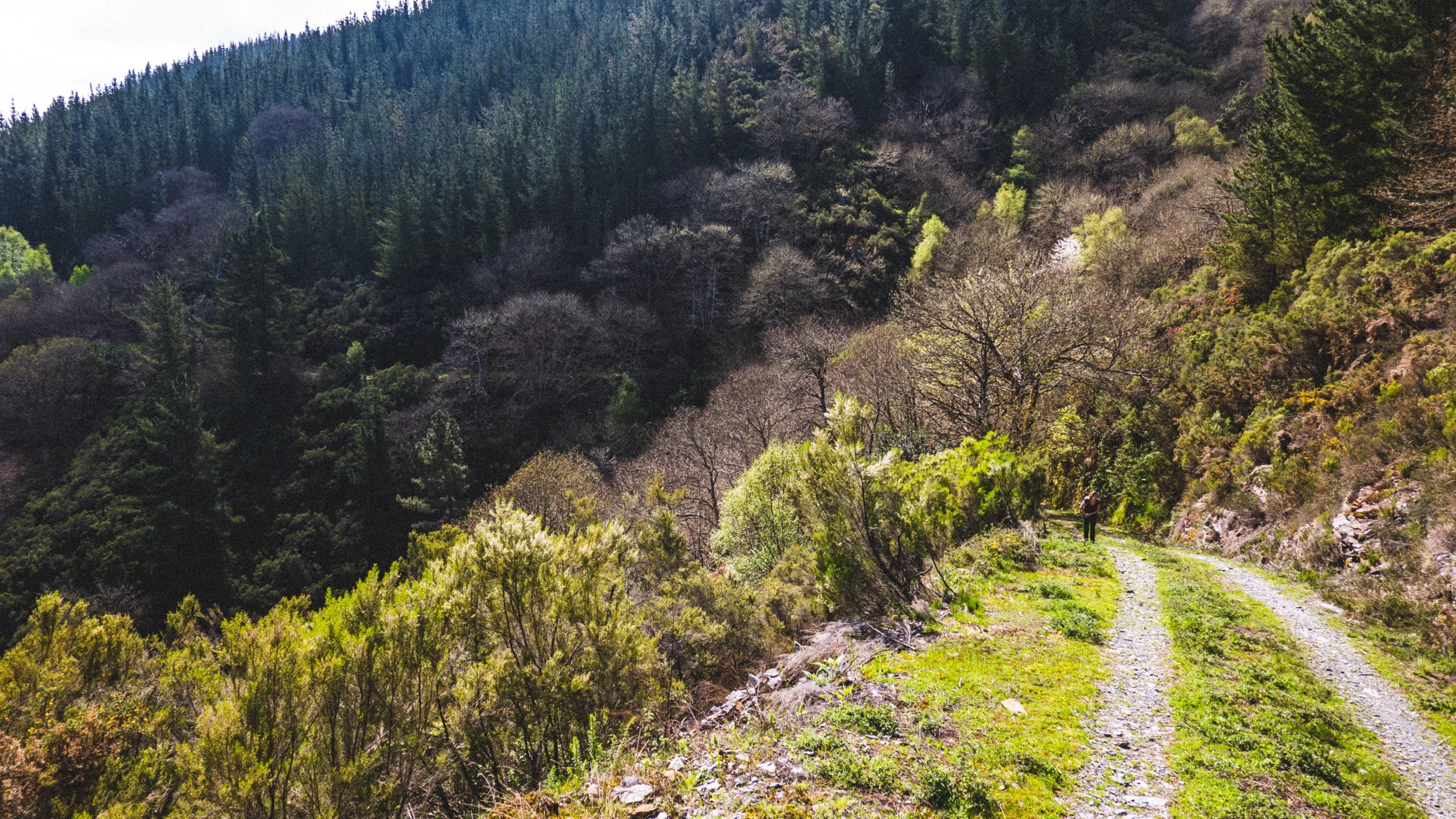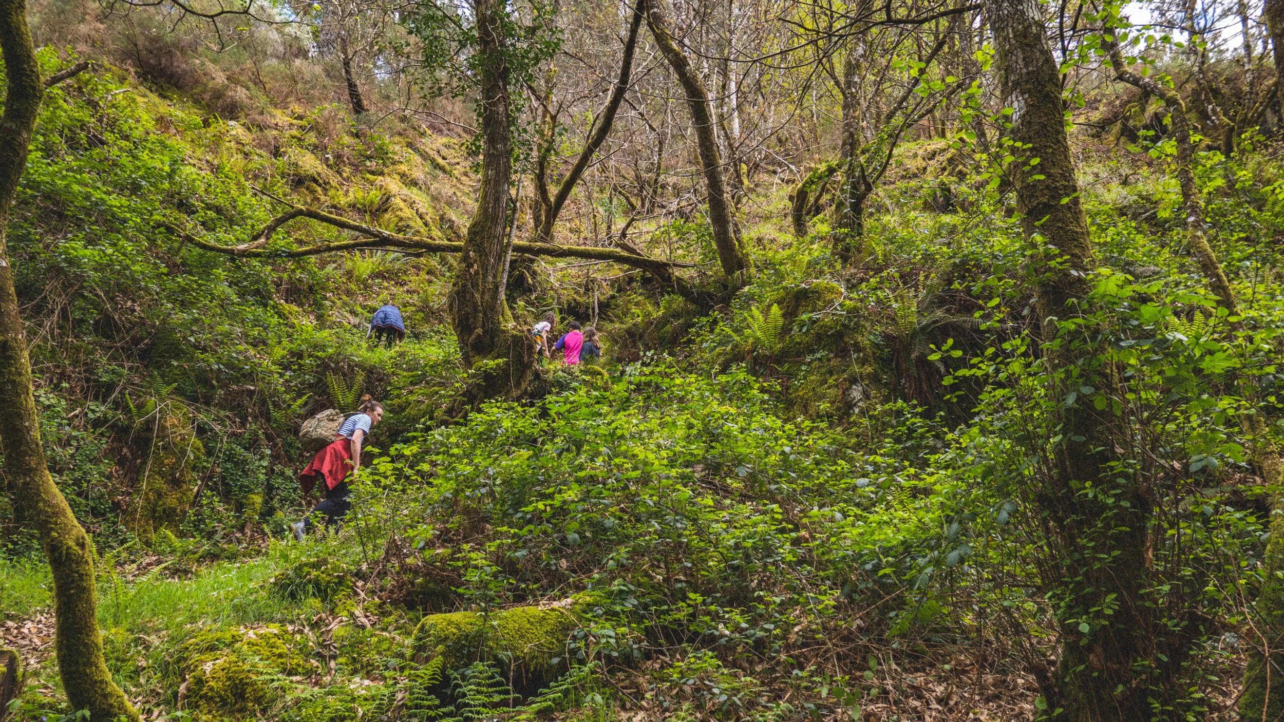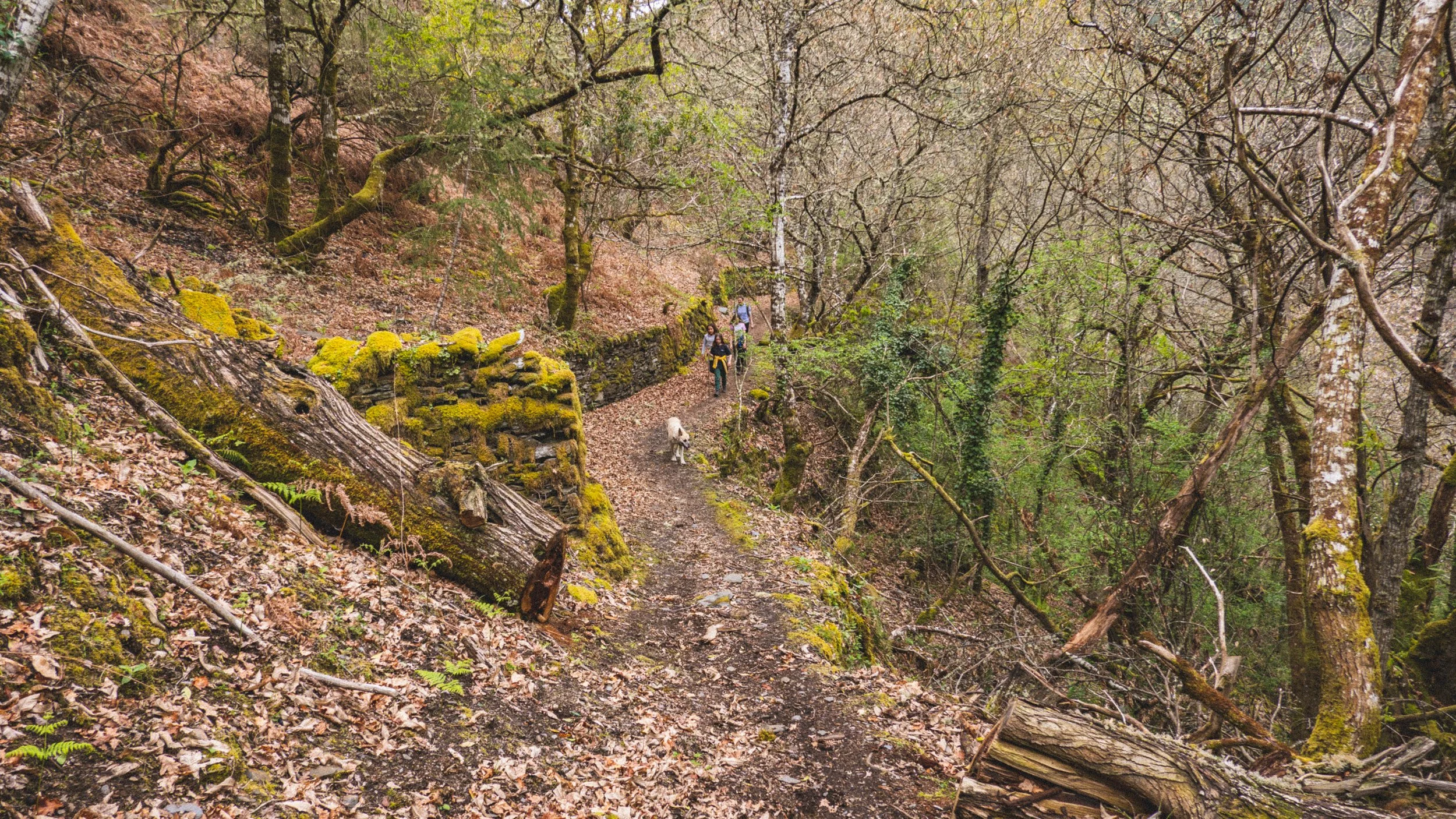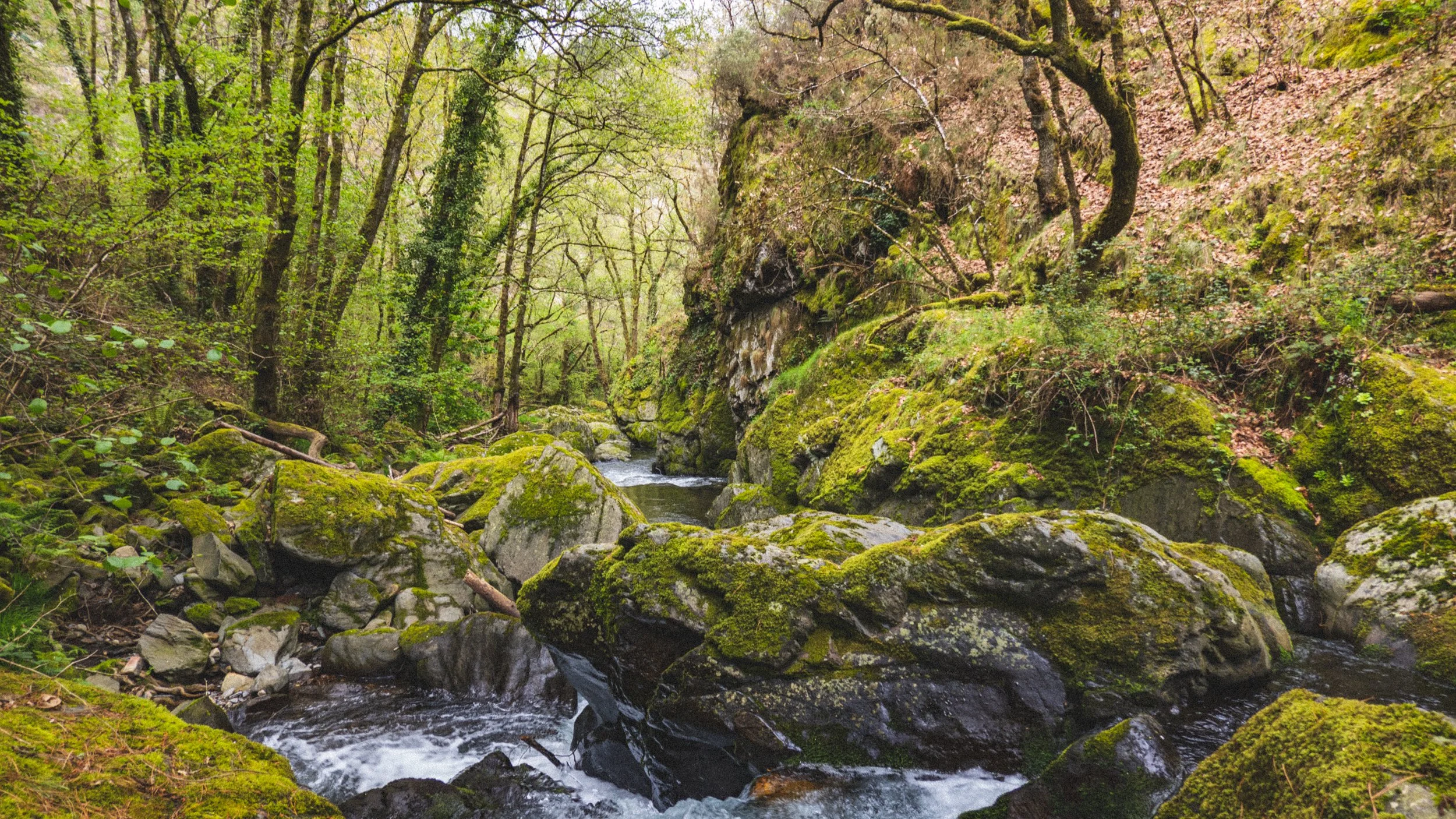 The first trail leads gently toward the stone village of Pesoz, slipping under a canopy of ancient chestnut and oak trees. The forest feels almost primeval — moss thick on the trunks, the air heavy with the scent of wet leaves and earth. Between the branches, you catch the soft murmur of the Río Agüeira, winding through ferns and fallen branches. Every bend holds a small discovery: a wooden bridge, an old mill half lost to time, or a ray of light piercing through the deep green.