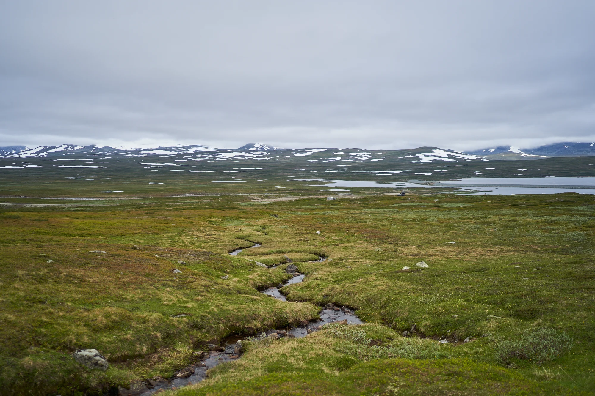 Beyond Alänaset, the road climbed higher — towards Stekenjokk, where the trees give way to tundra and the horizon stretches forever. Even in midsummer, the air was crisp, the wind strong, the light soft and endless.