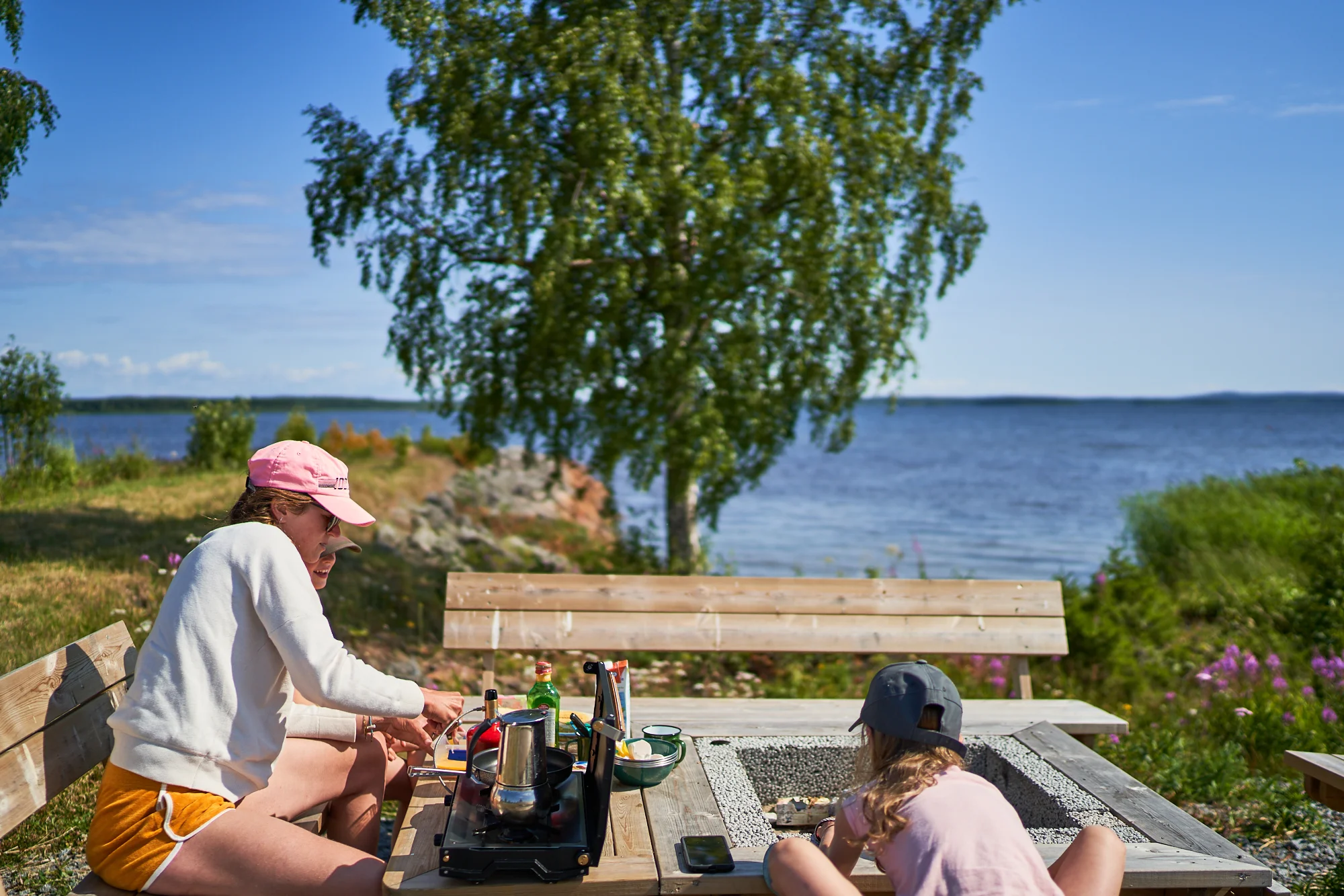Our first stop was Alänaset, a lakeside hamlet where the water was so pure you could drink it straight. The place was run by the villagers themselves, who’d set up a small “honesty cabinet” filled with homemade jam, eggs, and bread. Not the most dramatic scenery in Sweden, but full of quiet charm. After weeks of wild camping, even a wooden toilet feels luxurious.